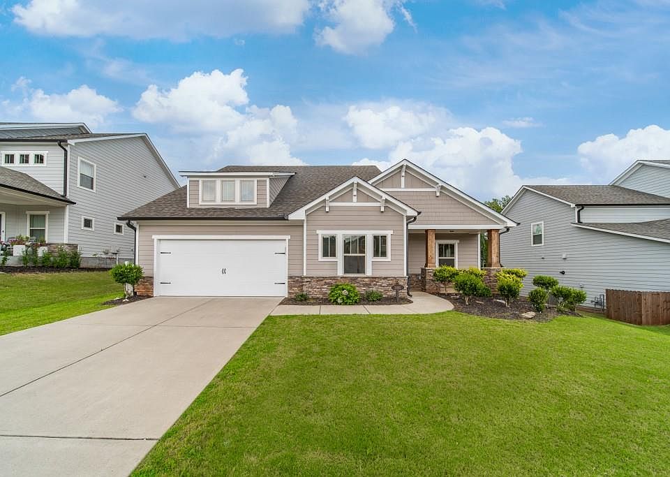 Like new, the Meritage's Darby floorplan features one-step entry, lots of living space, huge, dining/flex room, front porch and covered rear porch! Large, gourmet kitchen with stainless appliances features granite countertops, a double oven, and huge island ready for entertaining! Kitchen overlooks Great room which features a gas log fireplace. Large Master suite includes a super shower w two shower heads. LVP flooring throughout this beautiful home - No carpet!!! Covered porch overlooks private, fenced back yard! Spray foam insulated, Meritage built homes are renowned for their energy efficiency. Located in desirable Forsyth County with convenient access to Hwy 20 and GA-400. Close to schools, shopping, outdoor attractions. This one is turn-key, move-in ready and available for quick close! Don't miss out!