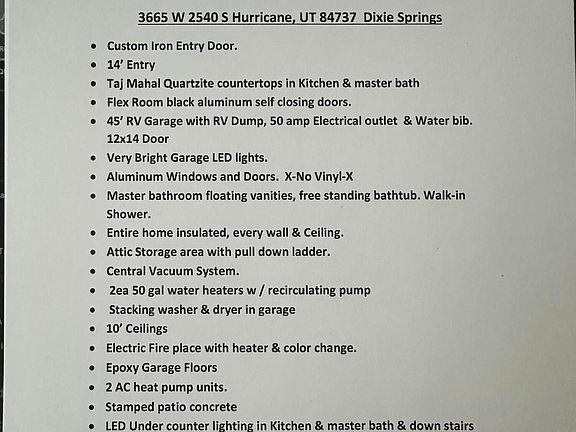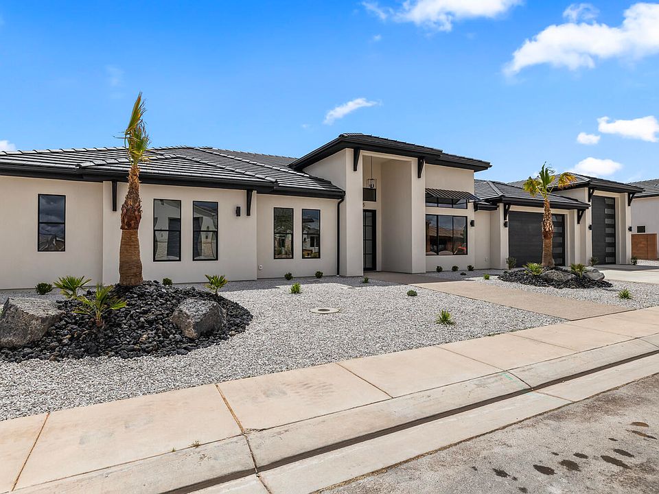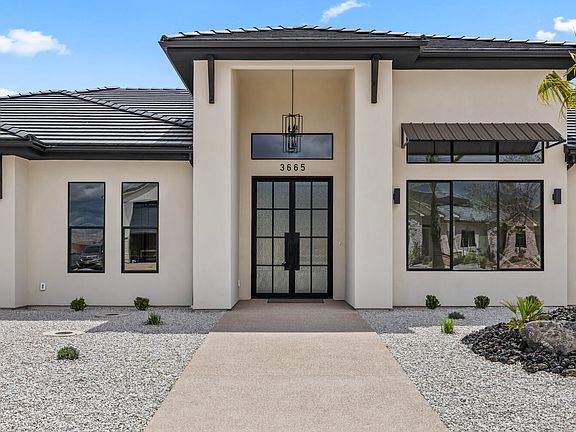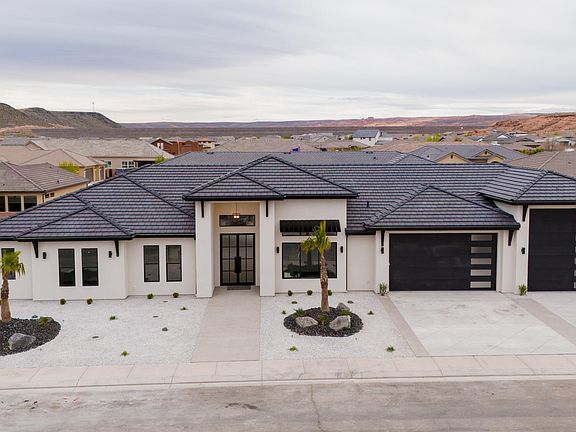 Just finished this 3176 sq ft Modern home in the best recreation area in Southern Utah, Dixie Springs. Open floor plan, 10' ceilings, great room and big kitchen 4 bedrooms, flex room, 4 bathrooms. 45' RV 12'x14' RV garage door, 10ft double car garage door. Fully landscaped with 2 beautiful palm trees & 6' double entry Iron Door. 1 1/2 miles to Sand Hollow Lake and Sand Dunes. Sand Hollow Golf Course and Copper Rock Golf Course just minutes away. LOT NEXT DOOR BUILDER OWNS AND CAN BUILD YOU 1 OR 2 RV GARAGES, SWIMMING POOL, SPORT COURT, ETC. SEE PICTURES