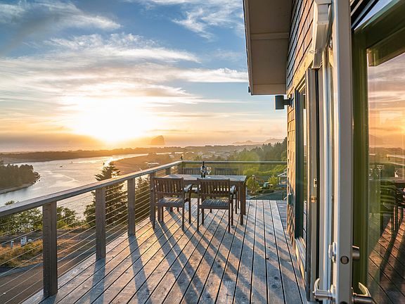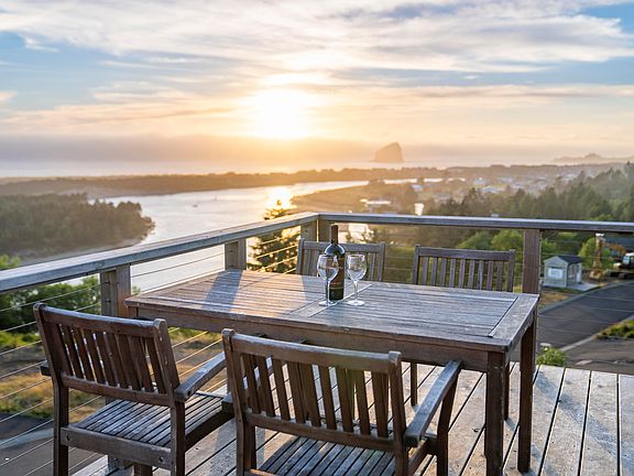 Lovely & modern townhome with incredible views, fully furnished and professionally decorated- ready for summer fun! Expansive ocean and Nestucca River views; must experience to appreciate. Fun and versatile layout with 2 master suites; adorable bunk room is a must-see!! Plenty of parking and garage space for your boat, kayaks, surf boards, mountain bikes. Private ocean view hot tub on the deck. Clubhouse with indoor pool/jacuzzi and 9-hole putting course across the street with almost 24/7 owner access. Open area next door is community owned and won't be built on. CCR's & height restrictions guarantees your view. Popular vacation rental with strong rental history. OPEN TO SHOW between rentals 8/8- 8/11. Owner is Oregon Real Estate Licensee.