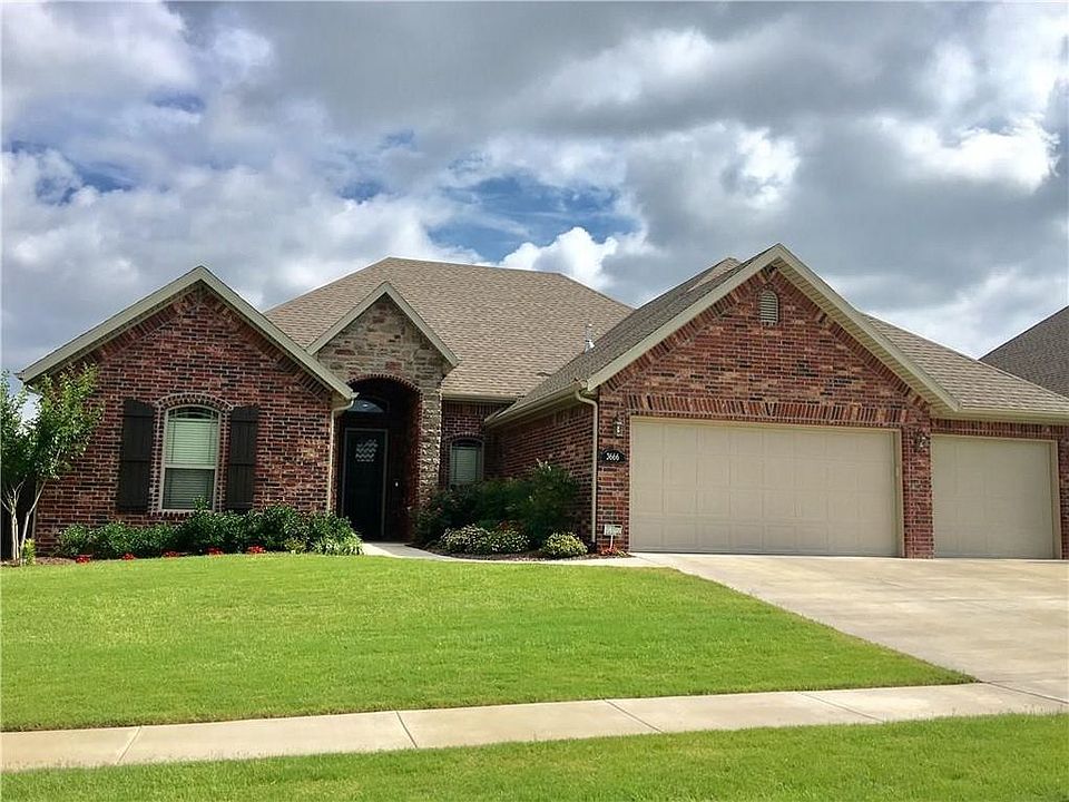 FOR SALE BY OWNER. Beautiful home in a great, family friendly, neighborhood. 4 bedroom, 3.5 bath, 3 Car Garage, Brick & Stone home (finished construction January 2015). Open Concept Home w/Split plan - Large Living Room w/gas Fireplace & Formal Dinning. Vaulted ceilings. Hardwood floors throughout with carpet in bedrooms and tile in bathrooms. Granite countertops throughout with under mount sinks. White kitchen cabinets with mounted lights. Stainless appliances. Large Master Suite, Large Walk-in closet, and tiled master shower with jetted tub. Master walk-in closet is attached to utility/wash room for convenience. Guest bedroom has full bath and walk in closet. Nest thermostat to control heat, AC and fan. Large Covered Patio wired for TV and audio. Stained privacy fence. Professionally treated lawn. House is central vac ready. Large 3 car garage with extended depth. Natural gas fitting for grill on back patio. LED canned lights throughout. Quiet neighborhood next to Botanical Gardens, community park, playground and picnic area. Close to NWA mall, and walk to Lake Fayetteville and Razorback Greenway trail system. Less than a mile from the Fayetteville trail system (Lake Fayetteville). 3 miles to Tyson Corporate. 8 miles to the U of A. 9 miles to JB Hunt Corporate. 23 miles to Walmart Corporate. For more info, call or text 479-287-3100.