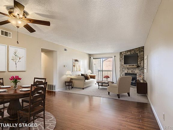 New paint and new carpet for this perfect 2bed 2bath condo. Light and bright with full size washer/dryer and designated parking space. Spacious living with cozy fireplace. Sliding door to private trex deck balcony. Sparkling engineered hardwood and kitchen with plenty of storage space. Both bedrooms are large and Primary bedroom has private bath. Great price in great location to zip up to the mountains or easy access to Tech Center or Bear Lake amenities.