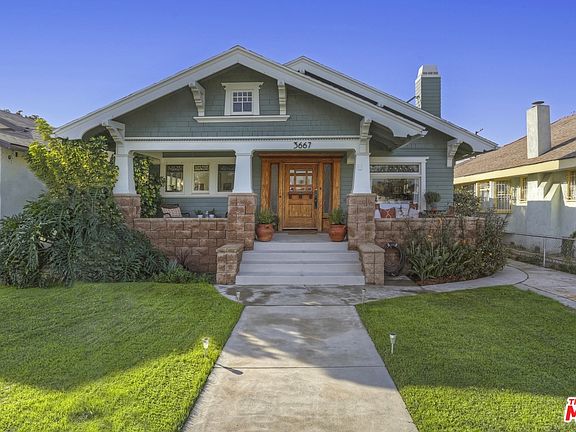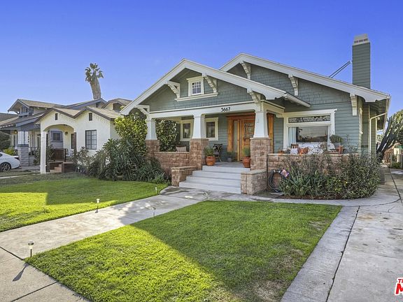 This beautiful Craftsman is situated in the heart of historic HPOZ Jefferson Park, part of the larger West Adams area. This gem of a neighborhood is filled with many original Craftsman homes. This charming three-bedroom home was lovingly restored by the owner and features Brazilian cherry wood floors, elegant boxed ceilings, built-in cabinetry and seating, built-in bookcases and stained glass. Combining the best of both worlds, this home also comes with an updated bathroom with shower and clawfoot tub, a newer kitchen with stainless steel appliances, as well as newer air conditioner and heating throughout. Large enclosed service porch area with washer & dryer. There is alley access to a 2-car garage. Enjoy the wide front porch and soak in the beauty of this great community. Easy access to Expo Line, new Target and Trader Joe's at USC and Starbucks. Just down the street you'll find the local Jefferson Park library as well as recently renovated Leslie Shaw Park.