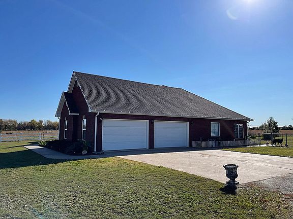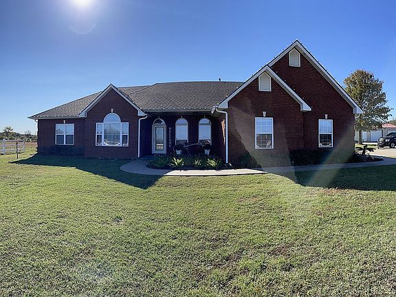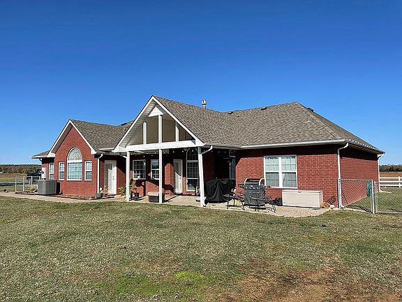Beautiful home located on 20 acres.Two car garage, office just off the entry, "open floor plan" vaulted ceilings. New 5 ton central heat and air. Beautiful Kitchen w/granite, breakfast room. Jacuzzi tub in the master bathroom. Mother-in-law suite. 30X40 Shop Building with ac and heat, Loafing Shed and Chicken Coop, all with electricity. The master closet is a safe room.