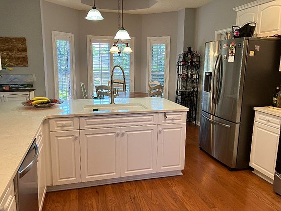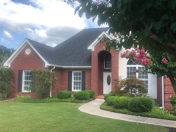 All-brick beauty upgraded in 2022. Beautiful open floor plan w/vaulted ceilings, plantation shutters & wooden plank floors. The LR features a gas fireplace & custom bookshelves. The kitchen has 2 year old stainless steel appliances, quartz countertops & porcelain farm sink w/industrial pull-down sprayer. The downstairs master suite has a walk-in closet & jacuzzi tub with double vanities & separate shower & W.C. Two additional bedrooms share a bathroom & there is a powder room off the dining/music room. The 4th bedroom features French doors, perfect for a home office & there is a large storage loft above the 2 car garage. The fenced, partially wooded, private backyard has mature azaleas, blackberries & blueberries, & features a sunporch, & stunning 15’ x 26’ composite deck. A Community Pool & sidewalks make this home the perfect location close to I85 & Chewacla State Park. Termite Bond, & Home Warranty! Pls note headboard does not stay.