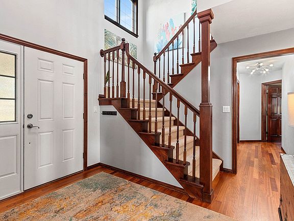 Located across from the Mountain Bay State Trail, this home welcomes you with a front porch, vaulted ceilings, hardwood floors, and abundant natural light. The kitchen features granite counters, a breakfast bar, and a dining area with French doors to the backyard. The living room offers a cozy gas fireplace, while the main-floor primary suite includes a walk-in closet and spa-like bath with a tiled shower and dual heads. First-floor laundry provides custom cabinetry with stone counters. The finished lower level adds a wet bar and extra living space. Step outside to your private retreat with a fenced yard, inground pool and slide, batting cage, paved patio, and plenty of space to relax or entertain. A 3-stall attached garage completes the package. Offers reviewed 10/6/2025.