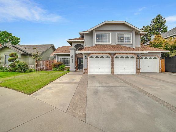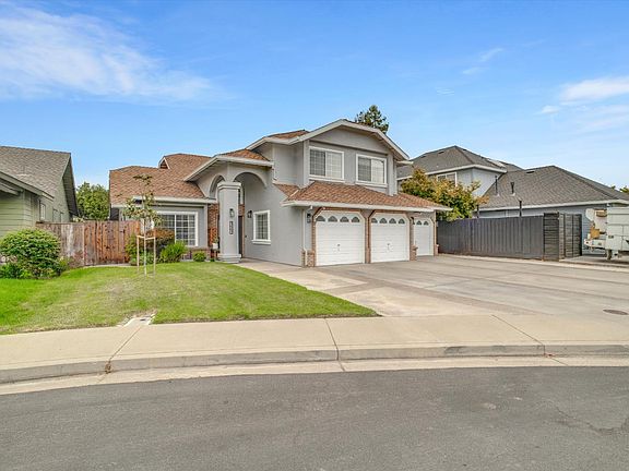 Welcome to this beautifully updated 2,839 sq. ft. home, perfectly located in a desirable northeast Turlock cul-de-sac with RV parking. This move-in ready residence features 4 spacious bedrooms and 3 bathrooms, including a downstairs bedroom with built-in desk and cabinetry. Formal living and dining rooms provide elegant spaces for gatherings, while the remodeled kitchen shines with a large eat-in island, quartz countertops, stainless steel appliances, walk-in pantry, and abundant storage. The kitchen flows seamlessly into the expansive family room, ideal for everyday living. Upstairs, the primary suite is a true retreat with a private balcony, built-in vanity, oversized jacuzzi tub, separate shower, double sinks, and dual walk-in closets. Additional highlights include new flooring, updated bathrooms, a large laundry room with cabinetry, and a 3-car garage with extended bay and backyard roll-up door. Enjoy low-maintenance outdoor living with a spacious covered patio. A prime location and thoughtful upgrades make this a fantastic family home.