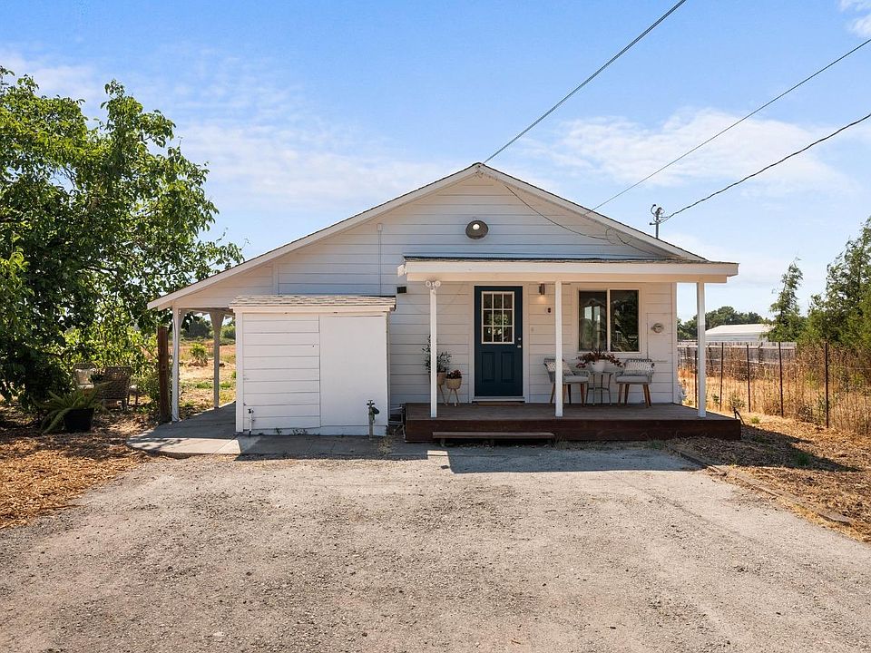 Discover charm and tranquility in this adorable country cottage, tucked off the main road for ultimate privacy but still close enough to town to make life easier. This sweet 1 bedroom, 1 bathroom home is located on nearly 4 acres with productive fruit trees, a barn, and a chicken coop, ready for you and your animals to enjoy. The home features recent energy efficiency updates: dual pane windows, a ductless mini-split system offering heat in the winter and AC in the summer, and a tankless water heater. Enjoy the fresh country air and stunning sunsets with two covered porches. Imagine peaceful mornings surrounded by nature and evenings under starlit skies. Embrace the opportunity to live your dream of country living with all the comforts of a modern home.