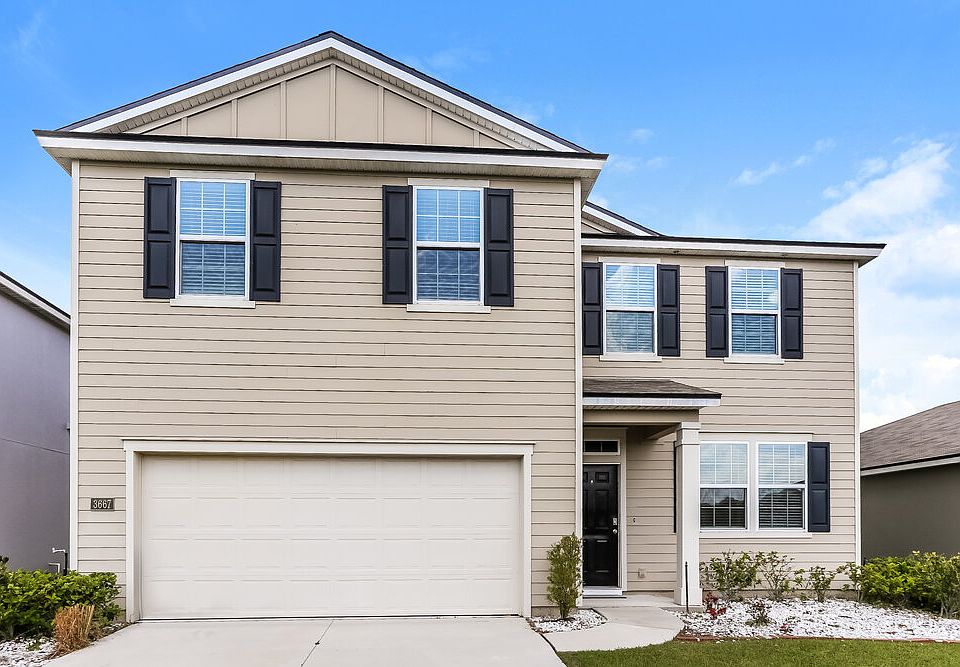 Please note, our homes are available on a first-come, first-serve basis and are not reserved until the lease is signed by all applicants and security deposits are collected. This home features Progress Smart Home - Progress Residential's smart home app, which allows you to control the home securely from any of your devices. Want to tour on your own? Click the "Self Tour" button on this home's RentProgress. This 2,343-square-foot Jacksonville, FL rental home will impress you with its amenities and spacious interior. It has four bedrooms, two-and-a-half bathrooms, and a den. Everyone can get comfortable in the living room, where an overhead light brightens the area. Windows on both exterior walls allow more natural light to enter. The kitchen feels very elegant with its beautiful stone-look countertops and stainless steel appliances. The center island gives you more space to prepare meals and has a double-basin sink. The main bedroom boasts a lighted ceiling fan and a sizable walk-in closet. Its en suite bathroom features modern tile flooring, dual vanity sinks, and a shower. Call for a showing soon.