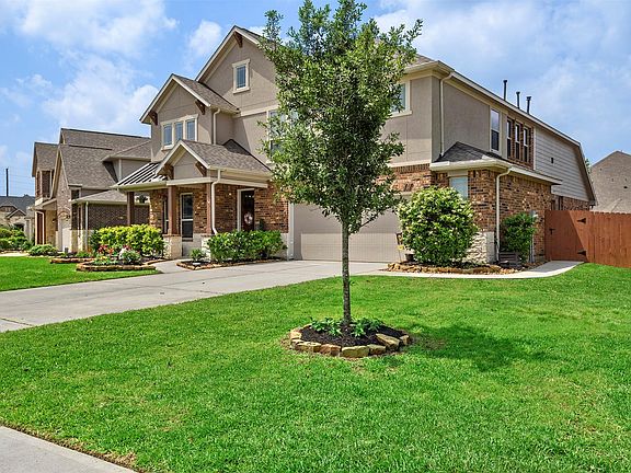 This home will capture you and make you want it to be yours! Such an inviting appeal with its covered front porch, beautiful landscaping that you will immediately be drawn to it! Upon entering, the beautiful wood floors great you in all the common spaces. High ceilings in the dining room and family room lend to the appeal. The kitchen boasts ample cabinets, huge island, walk-in pantry and gas cooktop. Spacious family room with its corner fireplace is adjacent to the kitchen/breakfast area and is great for entertaining. Two bedrooms down including a spacious primary and one secondary! Also next to the master is a secluded home office allowing you to get things done! Two spacious bedrooms, a bath and large game room are upstairs. Don't miss the fabulous back patio space with full outdoor kitchen complete with wine fridge! The bonuses to this house: 220 added in garage, expoxy garage, bypass switch so home can be run off portable generator, surge protection on HVAC w/ cold start and more!
