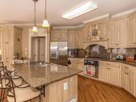 Charm, warmth and traditional elegance describe this beautiful home in prestigious Grove Park. When you walk under the the gas entrance lamp on the travertine style tiled foyer you will know that you have come home. Tall ceilings, antique style lighting fixture, and hardwood and tile floors make this old world home a "must see". The spacious kitchen features granite counters, a work island, stainless steel appliances and custom tile work. One gas fireplace is a pass through that warms the kitchen, eating area, and living room from both sides. The second gas fireplace is outside in the 10x14 screened in covered porch. Double trey ceiling in the fabulous Master suite. The travertine style tile throughout the master bath and the jetted tub offer unlimited opportunities for relaxation. Downstairs; Master Suite and 3 additional bedrooms and upstairs a spacious office/playroom with 1/2 bath and a media room with en-suite bath or 5th bedroom if needed. There is an extensive walk out attic storage space. The neighborhood offers nearly everything! Stocked lakes, indoor heated pool, hot tub, fitness suite, walking trails, gated entry, clubhouse with kitchen, playground, pavillion and year round lawn care with irrigation is association provided.