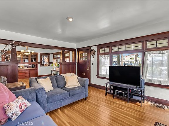 Welcome to this timeless “Wood Streets” 1914 Craftsman, rich with original charm and full of potential. From the moment you step inside, you'll be greeted by beautiful original hardwood floors, a stunning built-in hutch, and gorgeous wood trim in the formal dining room that speaks to the craftsmanship of a bygone era. A cozy wood-burning fireplace anchors the living room, making it the perfect place to unwind. The main floor features two well-sized bedrooms, a full bathroom, and a bright sunroom (or office) that offers flexibility for your lifestyle. Upstairs you'll find two more bedrooms (just need to add a wall or two), a 3/4 bathroom, and what feels like endless storage—perfect for keeping things tucked away but close at hand. Comfort is key, so enjoy the central air/heat, and there’s also a basement for additional storage! The longevity of the concrete shingle roof is appealing, and wait 'til you see the spacious, pool-sized backyard which offers a vintage garage and shed, and room to dream — expand the home, add an ADU, or build a new garage. Located across the street from Riverside City College, walking distance to Central Middle School, and a short drive to Poly High School. The home also qualifies for the Mills Act, offering significant property tax savings. Enjoy being just minutes from the Mission Inn Hotel & Spa, the Fox Theatre, restaurants, movie theatre, UCR, CBU, and more – all while enjoying the charm of the historic “Wood Streets” neighborhood. Don’t miss this unique opportunity to own a piece of Riverside history with endless potential!