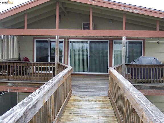 Great Water front location, 2-covered boat docks. What a view from the waterside deck. Home is all electric, has a pellet stove in the living Rm. All Cyclone fenced, side yard for RV parking and private access to levee top.