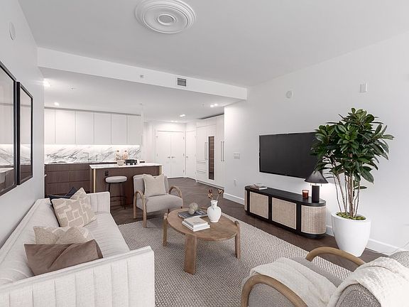 Refined penthouse living in Kitsilano’s newest boutique concrete offering, Raphael. Spanning 1,381 SF, this air-conditioned residence blends timeless design with elevated customizations: rich herringbone flooring throughout, marble countertops, an upgraded backsplash, motorized blinds, and a fully integrated Sub-Zero and Wolf kitchen including wine fridge, gas cooktop, and statement hood fan. The generous layout includes two bedrooms, two bathrooms, and flexible spaces for a den and dedicated office. The primary suite features a spa-calibre ensuite with walk-in shower and freestanding tub. Enjoy seamless indoor-outdoor living with a 168 SF balcony and a spectacular 570 SF private rooftop terrace with mountain views. Includes two parking and one locker. Pets and rentals welcome.