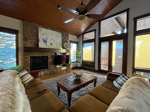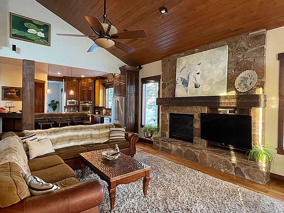 Serene lot borders 23 acres of protected open space w/seclusion, unobstructed views & easy access. Unsurpassed curb appeal & easy driveway. Timeless mountain house style. Impressive master suite w/enormous closet is on it's own designated floor & a half flight away from 3 large bedrooms & expansive loft. Magnificent kitchen & adjoining great room naturally ease into a spectacular dining area accessing expansive deck & built in BBQ leads to a terraced & large/flat back grassy yard, hot tub, fireplace & basketball/play area. Main floor features a beautiful fireplace and view in the office. The laundry room located just off the entrance from the 3-car garage. Downstairs features a light & bright family room, wet bar/kitchenette & theater room. Expansive windows capture sunlight throughout. Exquisite features incl copper, granite travertine & massive timbers; many storage areas; custom built-ins/cabinetry.