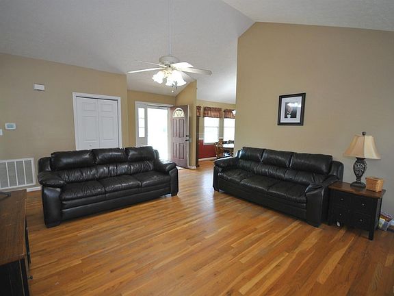 If you are looking for a nice Forest country type setting but within 5 miles of Jefferson Forest High School this one level living home having 3 bedrooms, 2 baths with full unfinished basement and 1 1/2 car garage. Spacious rocking chair front porch before entering the welcoming cathedral ceiling great room, vaulted ceiling dining room, nice eat in kitchen with pantry and main level laundry. Three nice size bedrooms including master suite with two closets and master bath with his & her vanity, shower and tub. Hardwood floors through main level. French doors to back deck and overlooking private back yard. Lower level is partitioned and ready to be finished with rough in bath and French doors to back yard. One and one half garage is plenty wide for storage and deep enough for two cars having a front door and French doors to back with a pull down stair attic.