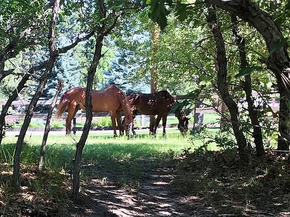 Hip Hip Hooray NO HOA! CALL LISTING AGENT TO SEE this Country Charmer with enchanting forest views of privately owned large acreage & mountain views to the west. Close to Parker, Granite Countered Kitchen, Jenn-Air Gas Stove/Oven Combo, new stainless steel refrigerator with ice maker, and mountain views. Forget the water bills as this home is on it's own well. Enjoy the covered balcony while keeping an eye on the sunset and your horses. The new barn was constructed in 2020 (12x36). Property is fully fenced. Newer roof (2018), newer electrical panel (2019. Private area 3 Person Hot Tub newer hot tub for relaxing day or night. Views of the front range, and backs to privately owned land with a stunning meadow view. "Call the Listing Agent for your personal view she is in the area." Flooring is hardwood, tile and carpet. 2 Bedrooms up and 2 bedrooms down. Updated Baths with Granite counters, lighting, tile and new cabinet in the lower level. Oversize 3 car garage, barn and shed. Ponderosa Park Estates is a highly desired area close to shopping in Parker, Castle Rock and Elizabeth. Many mature trees provide privacy. New items: Storm door, front door, water heater privacy fence section, The life style your looking for at an affordable price! This home is a Bi-Level, the lower level is not "considered a basement" however, cement slab, walk-out and is finished.