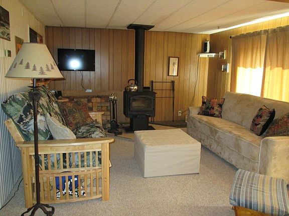 GREAT INVESTMENT! EASY RENTAL! Picture Perfect! Immaculate small cabin on almost one third acre. Exterior has the look of a log cabin and the yard is well kept and nicely landscaped, including a large fire pit and bench for outside enjoyment. Inside has two bedrooms, one bath, laundry, open dining room and kitchen and living room with newer wood burning fireplace. Windows have been upgraded. Great location for recreation headquarters or year round living. This home would be a great rental also. Move in ready, just bring your toys, children and pets.