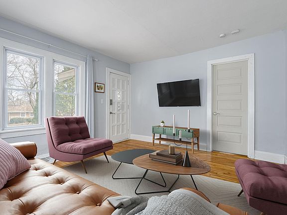 bedrooms are conveniently located off the living room with generous closet space. The modern bathroom, recently renovated in 2022 features an oversized tub, clean tile & a backlit mirror. Just down the stairs, you will enjoy a newly finished basement (2025) complete with new drain tile, sump pump, fresh drywall, paint, new carpeting & recessed lighting. Next to the bedroom in the lower level is a versatile flex room ready for your touches. Future bathroom? Walk-in closet? Home office? The options for use and function are endless. The roof was replaced in 2024 giving you the ultimate peace of mind. Summer evenings grilling on the expansive patio (installed in 2024) in the fully-fenced backyard are just a few short weeks away.