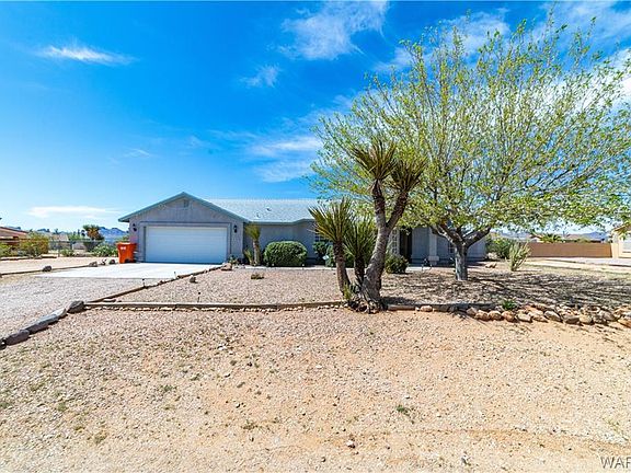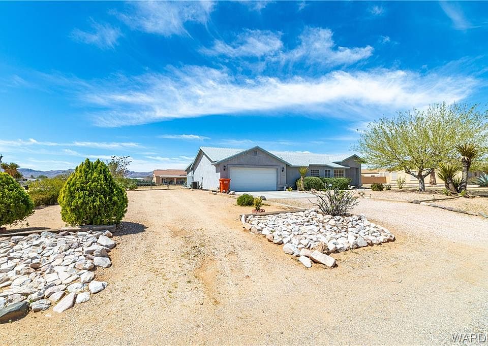 Spacious 1,715 SF split 3-bedroom home in beautiful Crystal Springs Estates on a half-acre property. The property is off paved road. Less than 30 minutes' drive to both Laughlin and Kingman. The property has large living room, dining area, and indoor laundry room. Also, there is a bonus room (20 x 14) in the back of the garage that can be used for an office or bedroom with an access from the back of the house. Enclosed back patio with extend the concrete, completed water softener hookup, shade trees, beautifully landscaped front and back yards. Boat deep garage and RV gate.