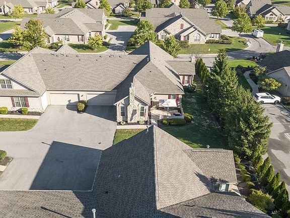Step inside this 2-bedroom, 2-bath home (1,222 sq ft) and you'll be surprised by how spacious it feels thanks to its smart, open layout and soaring cathedral ceiling. The airy kitchen features stainless steel appliances, granite countertops, soft-close cabinetry, and two pantries for extra storage. Enjoy casual meals at the breakfast bar or entertain with ease in the open dining and living area, complete with a modern Kingsman gas fireplace and luxury vinyl plank flooring throughout. The generous owner's suite boasts a large walk-in closet and a fully remodeled bath with a beautiful shower surround and updated fixtures. A second full bath, dedicated laundry room, and a 2-car garage with an extended storage/work space add everyday convenience. Relax on your large private patio and let the HOA take care of lawn care, snow removal, structure insurance, water, sewer, and trash — all included in the $410 monthly fee. Peace of mind comes with thoughtful updates, including a newer roof, A/C, furnace, water heater, windows, kitchen cabinetry, modern gas fireplace, fresh interior paint, and stylishly renovated bathrooms. Community amenities include a heated pool, clubhouse with library & fitness center, pool table, and event space. All this just minutes from downtown Powell, groceries, restaurants, and the Columbus Zoo.