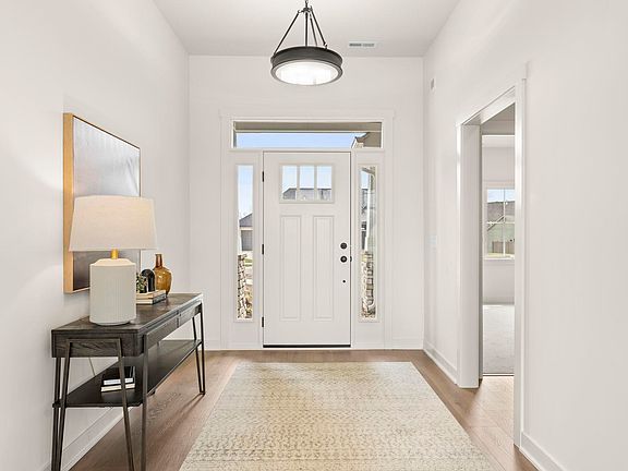 Open House Sunday 5/7 1-4pm~This brand new quality-constructed Star Homes ranch boasts custom design and functionality that merge to create a stunning and inviting living space. Featuring an open, split bedroom layout, this home exudes craftsmanship and attention to detail at every turn. The great room boasts 10-foot ceilings, a north-facing wall of windows that provide breathtaking views of Sage Points double pond, custom crafted bench seating with storage, open bookshelves, and a beautifully stained wrap-around mantle. Just beyond a beautiful archway featuring double sliding doors, the dinette space offers a walk-in pantry, breakfast bar enhanced with floating shelves and picture lighting, and locally crafted cabinetry surrounding a solid 6x3 island. The kitchen is adorned with textured subway tile backsplash, quartz countertops, polished nickel hardware, and a wooden statement exhaust hood. The front of the house offers two bedrooms and a full bathroom, while the rear is an owner's retreat that overlooks picturesque pond views. The primary bedroom boasts a sizable walk-in closet, fully ceramic tiled walk-in shower with bench, open linen shelving, and a dual sink vanity with a transom window that offers both natural light and privacy. A convenient and spacious laundry room with built-in storage and a utility closet is located nearby. The covered patio offers scenic panoramic views that are unmatched, making it the perfect spot for relaxation or entertainment. This home is located in the quaint neighborhood of Sage Pointe, which is part of the NWAC school district and just minutes away from Parkview North, shopping, and restaurants. With its quality construction, stunning design, and convenient location, this Star Homes ranch is sure to steal your heart.