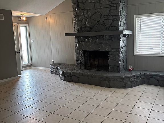 Large family home. Rock Fireplace with quaint sitting area. All tile floors throughout Freshly painted in Grey tones interior and exterior, New light fixtures, New Stainless-Steel Stove, New Roof, New Garage Door.