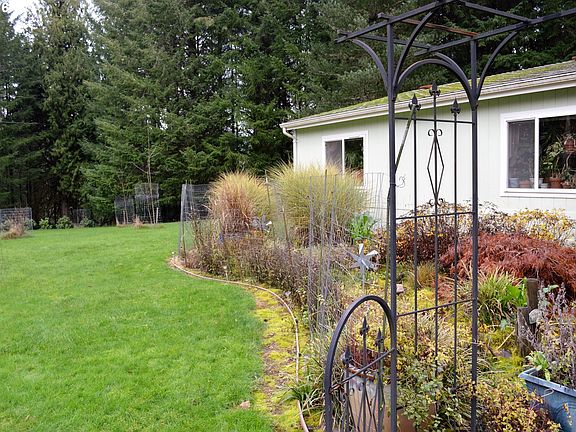 Private, secluded acreage with trails to BLM, shop/carport/barn/sheds, 3/2 with separation of space, vaulted ceilings,expansive, open gardens and lawn areas. Surrounded by timber (12-22"dbh),fenced backyard with Newer Tuf shed, covered porch, patio, lg master suite w/walkin closets, ensuite-bright light interior and mud rm with laundry