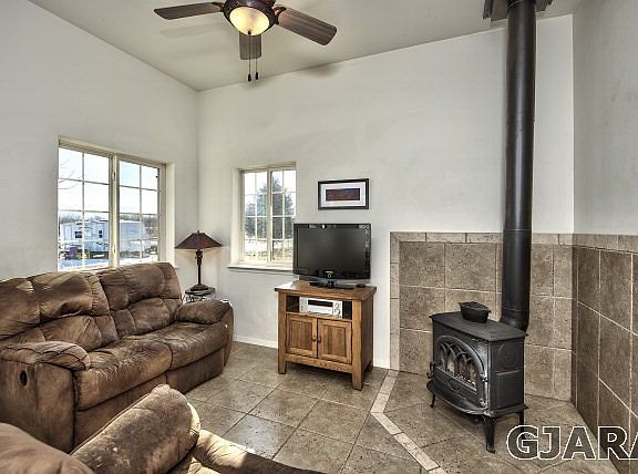 Spectacular setting! Views in every direction! Located off the Palisade fruit and wine byway, & nestled among an orchard & vineyard. Opportunity to build a 2nd larger home, Income producing orchard with cherries, apricots & peaches plus a Vineyard with 225 wine grapes. The 2 bedroom, 2 bath house features 2x6 construction, James Hardie Fiber Cement siding, in floor radiant heat, porcelain tile, 10 ft. ceilings on main level, jetted tub, Jotul wood stove, 8x30 3 season screened in porch, 1 bedroom & bath on main level & 1 bedroom, 1 bath on 2nd level. Upstairs also features a loft/family room area, extra storage area (not in sq. ft.), smartly designed to get full use of space - even offers a wine/fruit cellar. Senior water rights, RV Parking, 20x37 detached garage w/drive thru door, PLUS 5k grid-tie solar system that is owned, not rented - approx. $8/month electric bill.Bathrooms Info: 2-full