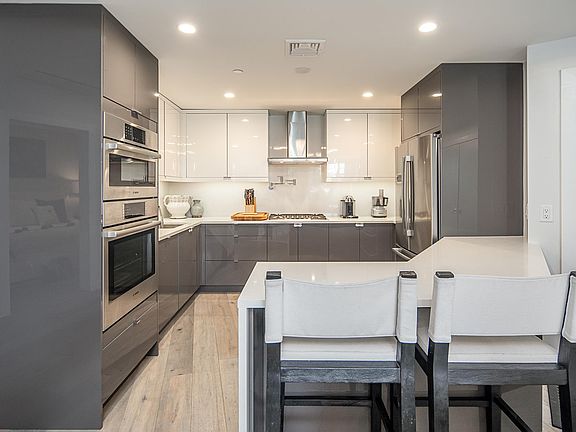 Stunning 1450 Sq Ft condo unit with 3 Bedrooms and 2.5 bathrooms and shared roof deck. Your unit comes with one indoor parking space. Customized shelving & lighting in all closets. Nest thermostat and more. This top of the line build was installed with Artisan-Woven Engineered Wood flooring imported from Spain, shades provided by Mechoshade, VONN and Sonneman dimmable lighting throughout, Baldwin door hardware, Vonn Instant Hot Water heater and Central Air Conditioning/Heating with Nest Thermostat. Your dream master bath is what you want to come home to. Gorgeous large format tiles sourced from Porcelanosa, large double sink with LED lit medicine cabinets, Quiet Whisper Panasonic bathroom vents. Enjoy and Relax in your 3-shower head system with one shower system located on each side of the shower stall and a massive 20" center rain shower head to wash away your day. The kitchen has a full Bosch Stainless Appliance package, Miseno Kitchen Vents vented to the outside, pot filler above the stove, soft close cabinetry and 26 under mount outlets for any and all cooking needs. Enjoy a large 1500 sq. ft. rooftop terrace with gas fire-pit, BBQ Grills and lounge seating and enjoy the panoramic views of New York City's iconic skyline. Pets allowed (Case by Case). Broker fee Copyright Hudson County MLS. All rights reserved. Information is deemed reliable but not guaranteed. Owner Pays water