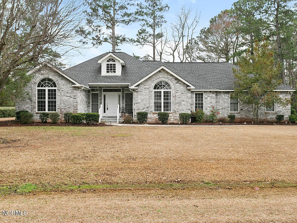 This beautiful 3 bedroom 2 bath home in the gated golf community of Brunswick Plantation is a must see! This light and bright home features an open floor plan - Living Room with 9 foot ceilings and beautiful wood built-ins along with a fireplace. Hardwood flooring throughout the main living area. Additional Den/Office was newly carpeted in 2022. Spacious kitchen and eat-in area has tile flooring, center island, an electric cooktop and a pantry. Eat-in Kitchen area has a skylight to let lots of natural light in! Separate Laundry Room with storage. Master bedroom features a tray ceiling with a large walk-in closet and new carpeting in 2022. Master bath is tiled with double vanities and a step-in shower. Upstairs Bonus Room is unfinished - use for storage or make it your own! All of this on a very private lot just under half an acre that includes an irrigation system. New stamped concrete patio (2020) rounds out the back yard of this beautiful property. Enjoy the many amenities of Brunswick Plantation - clubhouse, fitness center golf course, hot tub, indoor/outdoor pools, pickleball and a restaurant. Just minutes from beautiful Sunset Beach, fantastic golfing, shopping and fine dining! Make your appointment to see this beautiful home today!!