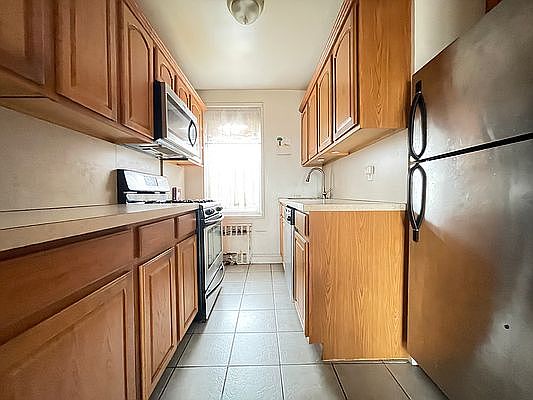 Spacious 2 bedroom with nice living room, separate kitchen, great natural light, king sized bedroom + queen sized bedroom. Elevator & laundry in building. Heat & Hot water included. One block to Kings Hwy [F] train and bars, restaurants, cafes, etc. on Kings Highway.