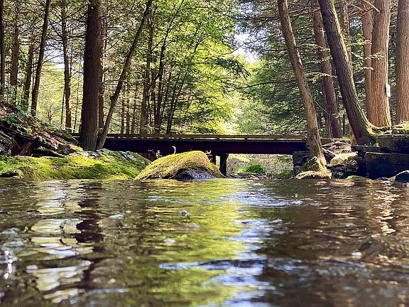 Custom Built Luxury Home in the Catskills, with a panoramic view of Mill Brook, which meanders through the Black Forest and ends at the Delaware River. Cross your private bridge up to what appears to be a charming little English-style stone cottage, but is actually a spacious 3400 square foot home. Once inside, you'll be enveloped in luxury, designer finishes from around the world resulting in a curated, mountain lodge-like feel. The stone wood-burning, masonry fireplace is magical and luxury details abound. The great room style living area includes a kitchen with custom, furniture quality cabinetry, built in appliances from Sub-zero, Liebherr and Fisher Paykel. The beautiful 48" dual oven range includes 6 burners & a griddle and was crafted in Italy by Ilve.