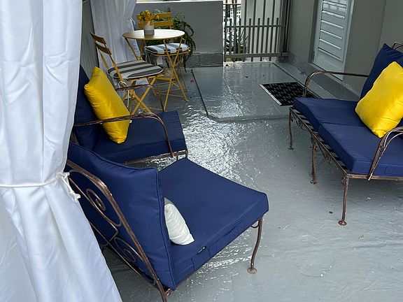Bolivar 367 (steps from Ciudadela) (All utilities included + cable & wifi) Right in the middle of the arts district, surrounded by hip restaurants and cafes. Fully furnished large Studio with spacious adjoining Terrace and gated parking. All utilities included. (2nd Floor unit) San Mateo neighborhood minutes away from Ciudadela with a 24hr Pueblo supper market and Planet Fitness Gym. 1/2 block from Ponce de Leon Ave with direct bus access to Old San Juan. Minutes away from Coco House and Base, shared work space facilities on Ponce de Leon Ave. Lease terms: 6 month minimum lease 2 adults maximum occupancy 1 month deposit +1 month rent Water, power, gas, cable and wifi included. Lease terms: 6 month minimum lease 2 adults maximum occupancy 1 month deposit +1 month rent No subletting. Water, power, gas, cable and wifi included. Gated parking Well trained pets are welcomed