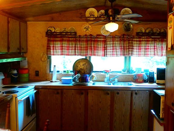 Nice almost level yard with singlewide manufactured home. Quite area and very private setting. Home is nice with 2 bedrooms and 1 bath. Kitchen is spacious and opens to the living room to allow you to be involved in with family while still working in the kitchen. Needs some updating but has lots of potential. Selling "As Is".