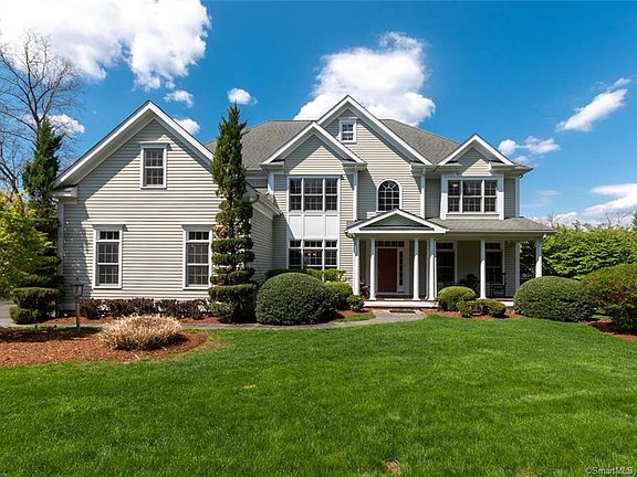 Welcome to Charming Cranbury area and Chestnut Hill located with equal distance to the hearts of Norwalk, Wilton and Westport. The former Four Winds Farm property abuts beautiful Cranbury Park, the former Gallaher Mansion and is protected by conservation land. You will enjoy the serenity of your private sanctuary, and marvel over the sunset views. Majestically set, with beautiful landscaping, you enter the mahogany floored covered sitting porch and proceed through the 2-story entrance foyer. Columns define entries to the living room and formal dining room. Enhanced by a coffered ceiling, glass expanses and a masonry fireplace, the grand double-height great room is open to the superlative eat-in kitchen with a large island, top of the line appliances, wet bar, wine cooler and superb pantry closets. 1/2 bath. The office/5th has adjacent full Bath. Heated 3-car gar.plus deck complete the level. Upper level : Private and grand, the Master suite embraces a sitting area plus tray ceilings. The lavish bathroom with corner spa tub, a walk-in shower and marble topped vanities, walk-in closets, 15.6x10.9 and 7.8x4.4 are exceptional. 2nd Br & bath, while Br 3 and 4 share a "Jack and Jill" bath. Laundry Rm.The lower terrace level is finished with wet bar, ref., full B, walls of mirrored wardrobes etc. Perfect media/Play room + utility Rooms, etc. French doors to the beautiful back yard. Perfect commuter location/close to mayor Highways/Metro No./Preappr. requested. See Addendums.