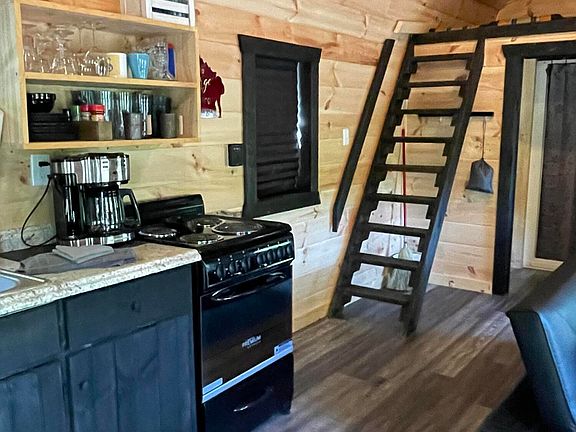 Kick back and relax after a long day of climbing or hiking in The Red. This cozy little cabin, located in Cliffview resort and wont disappoint. Enjoy coffee or cocktails on the back porch or around the firepit listening to the sounds of the waterfall and overlooking the valleys of The Red River Gorge.