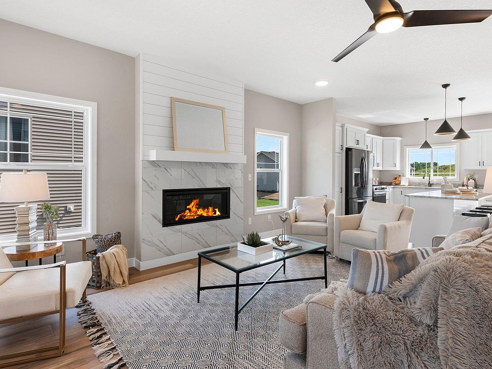 Explore our popular Halbrook II, a sunlit rambler-style home offering one-level living with a finished lower level and ample storage. The main area features a cozy Cosmos fireplace, and the open floor plan with a kitchen that boasts a custom pantry, center island, and black stainless steel appliances, gas stove, and solid surface counter tops. Enjoy the bright dining area with oversized sliding doors that will walk out to a future deck. The en-suite offers a private bath, double bowls, 2 spacious closets and walks through to the laundry. The lower level presents lookout windows, a finished opened great room, bath, and one bedroom, with additional space for storage or customization. Make the Halbrook II your next move—a perfect blend of comfort, convenience and style.