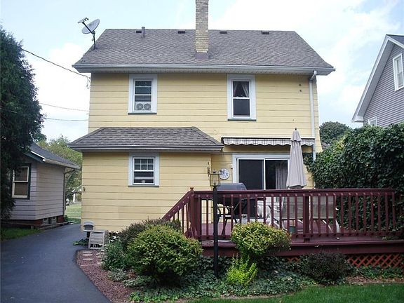 Cozy colonial with 3 bedrooms, 1 bath, hardwood floors and natural woodwork, 2 beautiful leaded glass windows and 13 thermal replacement windows. Sliding glass door to deck from formal dining room. Huge family room with hardwood floors. Front entry way and front patio. Roof is about 12 yrs. old.