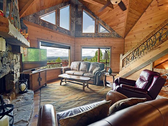 NEW PRICE FOR MAJESTIC VIEWS of the Northwest mountains of Georgia, Tenn. & North Carolina. Acreage of US Forest Service adjoins cabin in back & will delight your desires to truly 'be in the mountains'! The owners added their special touches such as waterfall spouts into decorative bath bowls; birch accents complementing the wood walls & floor to ceiling rock fireplace; branches intertwined on the staircases add interest; the screened porch with wood fireplace is another spot to gather to enjoy the surroundings; downstairs is great for games, cards or movies. Apprx 2530 sq ft with a generator, the patio is wired for hot tub & 24x25 workshop for hobbies or convert for autos. No HOA. Easy access to Blue Ridge or Blairsville, Lake Nottley & Lake Blue Ridge is only minutes away for boating, swimming & picnics, Blue Ridge Scenic Railway, visit the many orchards, wineries, creeks & rivers to fish or canoe & enjoy all beautiful areas of North Ga. Rentals allowed. WHY WAIT? ENJOY LIFE!!
