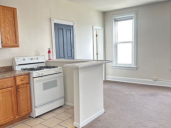 2nd Floor Apt, open living room/kitchen. Kitchen has ceramic tile. Full bath with ceramic tile floor. On-site laundry. 1 year lease.
