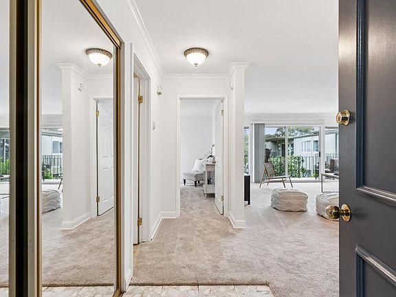 Set in the quiet hills of Sausalito's Nevada Valley, this updated condo at The Roc offers a peaceful retreat with peekaboo bay views and tree-lined surroundings. The unit features new paint, carpet, stove, and a remodeled walk-in shower, plus crown molding throughout and generous closet spaceincluding an extra storage closet in the garage. The private deck and bedroom overlook trees lit with evening spotlights, creating a warm and calming ambiance. Includes one garage parking space with a commercial-grade bike rack. The condo has been lovingly owned for over 20 years. The Roc is known for its heated pool with stunning Mt. Tam views, two elevators, and expansive water views from the entrance. Located just 4 miles from the Golden Gate Bridge and 2 miles from the ferry, the neighborhood offers easy access to trails, houseboats, Remington Dog Park, MLK Park, and top local spots like Mollie Stone's, Bay Model, Fish, and Le Garage. Ideal for those seeking a quiet, community-oriented setting with quick access to Southern Marin's best.