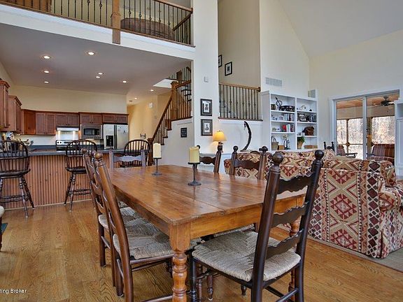 Private retreat on 20 acres located in an exclusive gated community 90 minutes from Louisville, KY Property features a private dock in a quiet cove, drive thru barn for storage, & the possibility for dividing into total of 3 lots. The home is built with minimal maintenance in mind. Its many amenities include a hot tub, outdoor shower, screened porch & dog room.