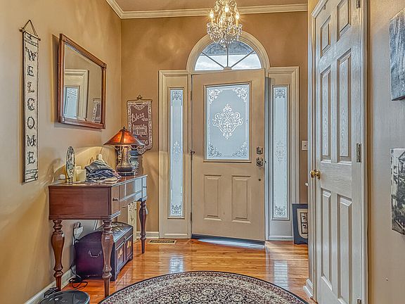 Patriot Hills Golf Course home! Incredible views from the highest point in Patriot Hills. Screened-in porch with natural gas grill hook-up, hardwood floors, cathedral ceiling, gas log fireplace, all appliances stay including stainless kitchen appliances, clothes washer and gas dryer, recent kitchen and bathroom remodels, 2 car garage, wet bar in living room, concrete driveway, brick exterior, whirlpool tub in master with separate walk-in shower, this home is ready to move into.