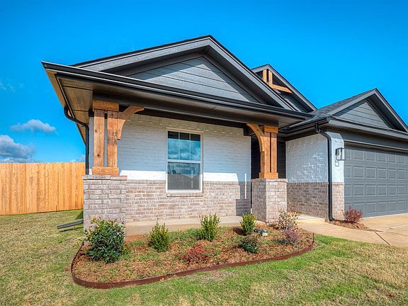 *Reduced more than $14K* This captivating home, located on a corner homesite, features an inviting open layout, perfect for seamless entertaining and relaxation. The large kitchen island is an ideal space for prepping meals while enjoying the company of loved ones. Impeccably designed, the kitchen has stainless steel appliances, a farmhouse sink, and elegant quartz countertops. Throughout the main living areas, you'll enjoy wood-look tile, while the bedrooms offer both comfort and style, complete with ceiling fans for added convenience. Ample storage abounds, with generous closets including a primary walk-in and a spacious garage. Step outside onto the charming patio, where you can revel in the joys of outdoor living. Oasis Ranch is a quiet community featuring a playground and nature habitat with a pond. Blanchard was recently named one of the safest cities in Oklahoma. Included features: * One-year home warranty * 10-year structural warranty * Guaranteed heating and cooling usage of most Ideal homes * Fully landscaped front & backyard * Fully fenced backyard. Floorplan may differ slightly from completed home.