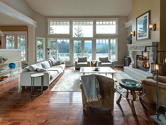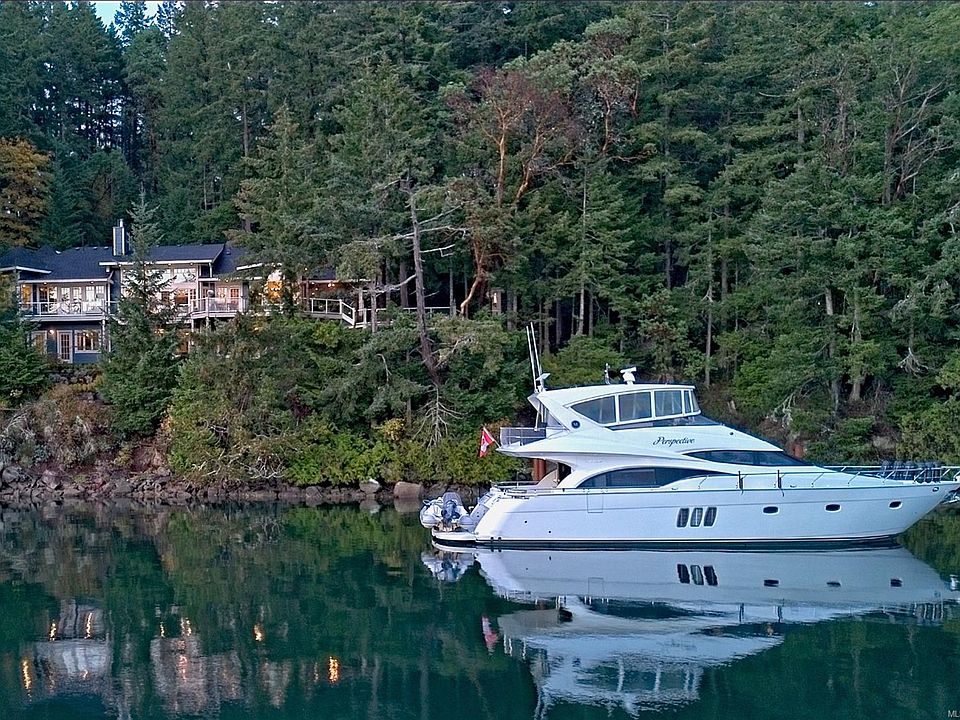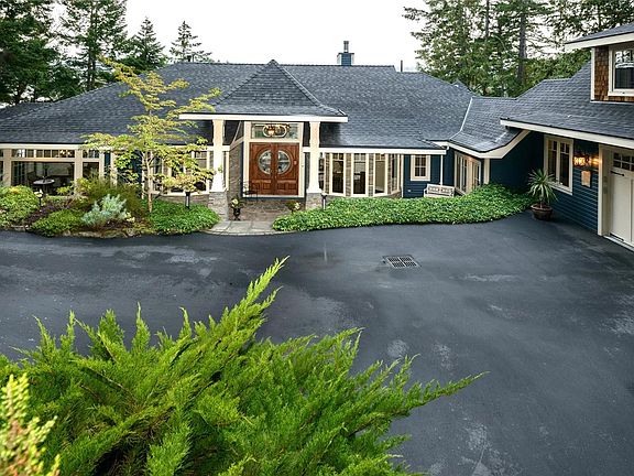 The easy rhythm of fine design welcomes from the garden gate at this exceptional oceanfront estate. Classic coastal elegance and meticulous modern design principles incorporate a wealth of fine appointments throughout an energetic floor plan. By dividing approximately 5200'sq.ft. over three distinctly private levels, the house itself provides a journey within its walls. Soaring ceilings. Banks of waterside windows. Media / games room. Cozy den. Oceanview gym. Separate offices. Four fireplaces. Private guest suite. Ample garaging. Detached 750' workshop. Beautifully developed 1.82 acre grounds feature professionally choreographed gardens, courtyard loggia, spa, extensive artisan stonework, illuminated pathways and gentle staircase to beach and boat. Exceptional moorage has comfortably accommodated 60' craft all the year round. This timeless estate could easily become the place you would rather be than anywhere else!