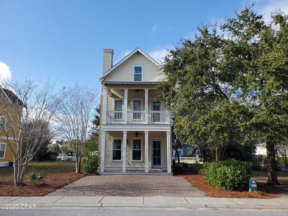 Take a look at this Gorgeuos 4 bed 3.5 bath Florida Cottage in the heart of Panama City Beach. This Open concept home welcomes you into the expansive living/dining Kitchen area. With ample space for entertaining guests. The gas fireplace in the living room is perfect the winter nights. The kitchen boasts a large Island with sink, Breakfast bar, Stainless steel appliances and a wine fridge. Granite countertops and beautiful custom cabinets. The 1/2 bath is located downstairs. The Second floor hosts the master and additional bedroom. The master has its own balcony. The master Bath has double vanities, tub shower combo and large walk in closet. The additional bedroom has its own bath with large shower. The third has the two extra bedrooms and very large full bathroom also. Call Today.