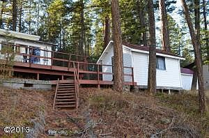 Prime location for your new dream home or just enjoy this beachfront one bedroom one bath cabin with adjacent bunk houses. This prime waterfront parcel offers 128 feet of Flathead Lake frontage on a 1.55 acre lot. Shared well system in place. Large dock for all you boating and recreational needs.Two sleeping cabins & detached garage.No plumbing/heat in sleeping cabins.