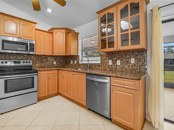 New Roof 2023. Home is on Private Cul-De-Sac.3 Bedroom, 2 Bathroom, 2 Car Garage Home for Rent located in desirable Deep Creek. This beautiful home features a BRIGHT & AIRY open floor plan, high & vaulted ceilings, ceiling fans, and diagonal laid tile flooring throughout. The large Master Suite is a fantastic size w/ patio access, a WALK-IN closet, and an attached Master Bathroom w/ a shower/tub combo. The additional bedrooms are on a split floor plan offering GREAT PRIVACY and have ceiling fans, closets, and close access to the guest bathroom. You will LOVE relaxing in the screened-in back patio that overlooks the LARGE BACKYARD - perfect for enjoying the beautiful Florida weather or hosting BBQ's with friends! INDOOR LAUNDRY ROOM W/ STORAGE & SINK - Just minutes to I-75, US-41, local favorites such as Fishermen's Village, Ponce De Leon Park, shopping & boutiques, fine & casual dining and LIVE entertainment.