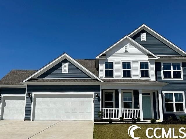 3- Car Garage, Gourmet Kitchen, Screen porch, Waterfront, Soaring Great room ceiling, and a huge 4-panel glass sliding door! This Ivey TRL- Traditional elevation home offers a traditional exterior and a transitional-Coastal interior. 3 Bedrooms, 2.5 Baths, a study with French doors, a large laundry room and valet upon entering from the garage, a first-floor primary bedroom, bedrooms 2 and 3 are privately located upstairs with a loft, wrought iron stairs, and so much more. Easy maintenance upgraded Norman Rockwell vinyl siding by KP Products on the exterior. Mohawk REV Wood laminate flooring throughout the first floor. Mohawk Level 2 carpet on the 2nd level. The first-floor primary bedroom boasts a gorgeous bay window, tray ceiling with crown molding, walk in full tile spa shower with a Moen rain shower head and wall shower head, a double sink vanity with crisp white Aristocraft Level 2 cabinets, and 2 huge walk-in closets with Daltile tile flooring. The generous eat-in kitchen is open to the Great room with a fireplace focal point. The fireplace includes a blower. The kitchen offers an entry into the Dining room through a spacious Butler's pantry. The Gourmet kitchen includes a large kitchen Island prewired for 3 future pendant lights, Gourmet Vitruvian tile backsplash, Whirlpool stainless steel appliances (natural gas cooktop, exhaust hood vented outside, dishwasher, wall oven, and wall microwave), a glass pantry door, wooden pantry shelves, under cabinet lights, a Moen Arbor Stainless Steel plumbing fixture, soft close doors/drawers, waste basket drawer, Level 3 42" Aristocraft Flagstone cabinets with glass mullions, Granite countertops, and a white Kohler Cast Iron apron front sink. All full baths feature Level 2 Aristocraft cabinets and upgraded Country Gray cultured marble vanity tops. The Foyer includes a transom window over the front door and is open to the Dining room which offers a tray ceiling with crown molding. Other upgrades include gutters, attic storage with pull down stairs in the garage, a lawn irrigation system, faux wood window blinds, Sherwin Williams Agreeable Gray wall paint and white ceilings, a TV Wall Prep, floor outlet, 4 additional LED puck lights in the great room, an ERV-Energy Recovery Ventilator system, natural gas tankless Rinnai water heater located inside the garage to extend the lifetime, and a 33x12 concrete patio off the covered backporch. This home is Energy Star Certified and Indoor AirPlus Qualifed which means a more comfortable home with less pests, less moisture, better indoor air quality, and a lower utility cost.