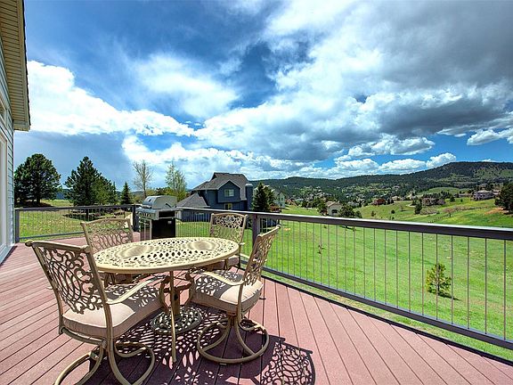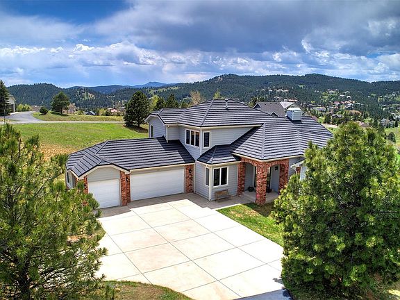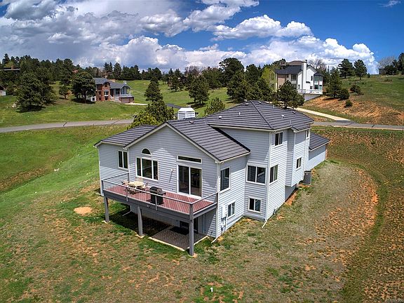 This sunny, beautifully maintained home offers a prime location & beautiful views. Sit on the expansive trex deck & watch the wildlife that frequent here, or hop on your bike for a short ride to miles of trails & parkland. Inside, you will find light bright living & a great floor plan. Great open kitchen w/ ample granite counters, breakfast bar & stainless appliances. Open & sunny living & family room with see through fireplace. True main level living w/garage & laundry next to kitchen. Also on the main level, the lofted master suite features a large walk-in, & spacious bath w/ double sinks & soaking tub. 6-panel doors throughout. Large walk-out lower level has 9' ceilings, wet bar, pellet stove & add'l bath. Huge storage area too. Decra metal roof & masonite siding make maintenance easy. Whole house AC. You will love the sunny feel, open flow, & fabulous views of this very lightly used home. 10 min to shopping, 25 min to downtown Denver, & 40 min to ski. Perfect Colorado living!